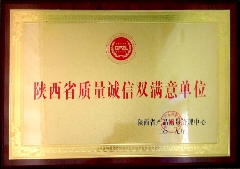 陜西省質(zhì)量誠(chéng)信雙滿意單位