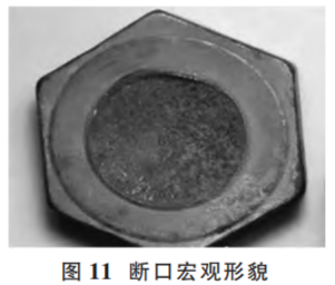 (1)失效案例。失效案例如圖10所示。該螺栓直徑規(guī)格為M36,性能等級為8.8級,材質(zhì)為 42CrMo,表面處理為鍍鋅,斷裂發(fā)生在安裝后。