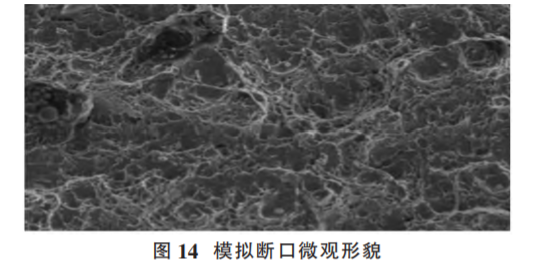 人為斷口觀察。在斷裂螺栓桿部取縱向光滑試樣,采用手動敲擊方式獲取模擬斷口進行電鏡觀察,微觀形貌為韌窩特征,見圖 14。