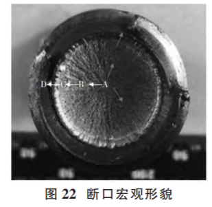 斷裂螺栓宏觀形貌如圖21,斷口宏觀形貌如圖 22。
